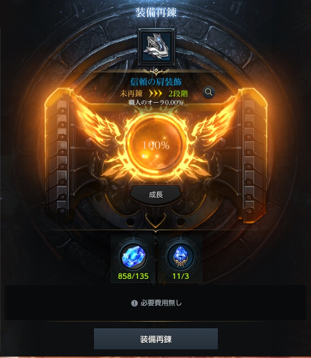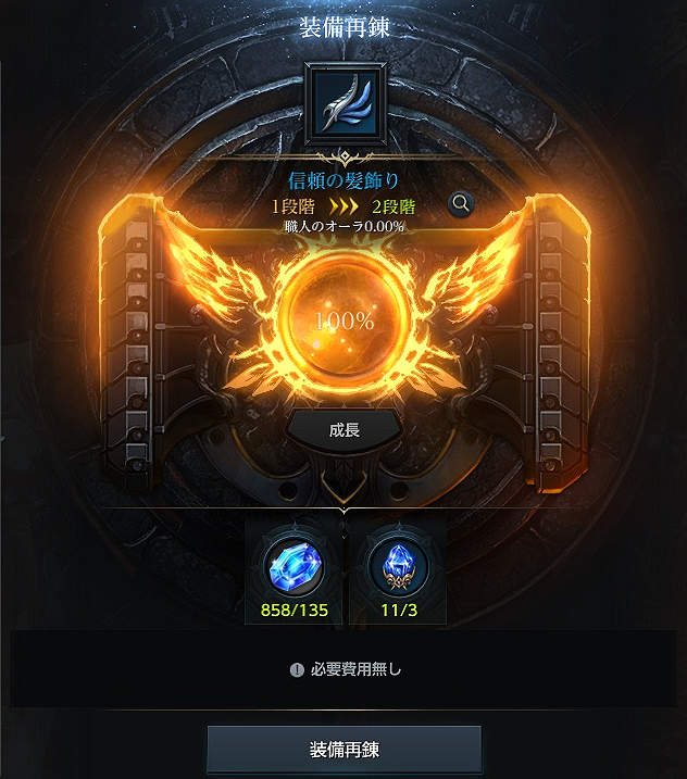 ちなみに普通に強化すると 成長➡生命の欠片510個(シリング1530) ティア2守護石135個 ティア2生命の突破石3個使います。(武器は破壊+生命気持ち石の数多め)