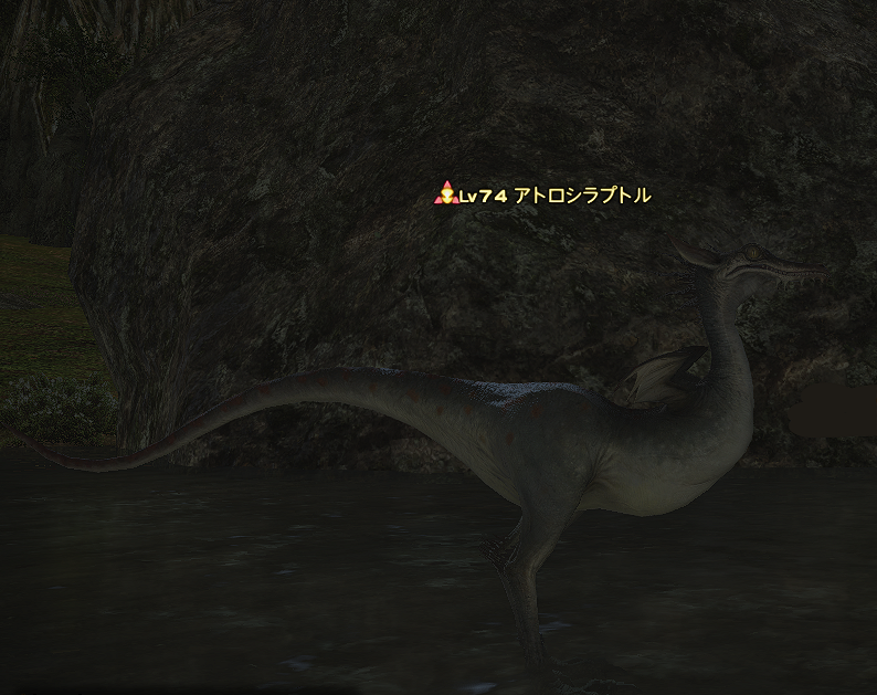 ゴーン砦の下付近でアトロシラプトル生息中!赤枠の所にいるのでグルグル回りながら狩りましたw敵はLv74 倒せば必ず手に入るものでもなかったw4~5匹倒しても出ない時は出ないが、出る時はまとめて4つとかゲットしたりするので・・まぁいいのかな!これで1つしか手に入らないっていうなら相当苦行だったな笑(´・ω・`;)