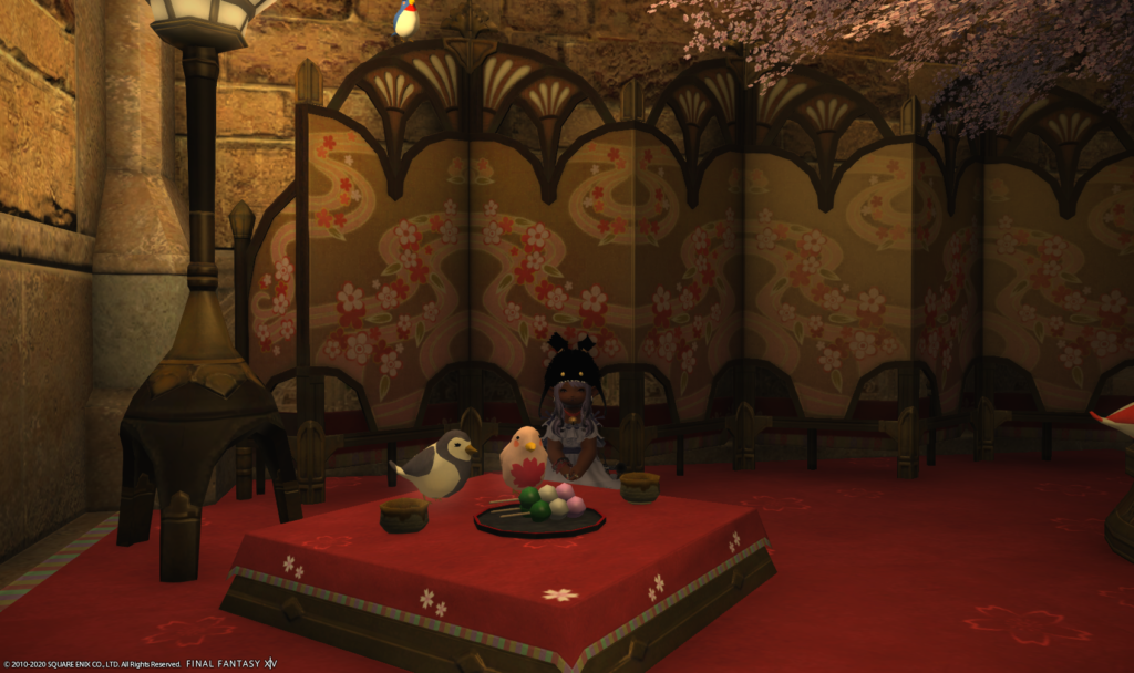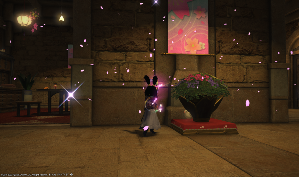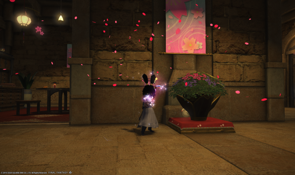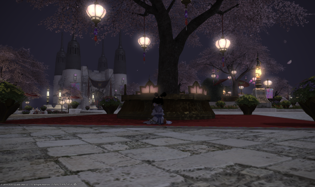 ゲーム内は桜が満開です♪桜いいですなぁ♡なんかFF14は季節ごとのイベントで街の装飾が変わるので、とってもいい!ぴぃちこはこういうの大好きっす!