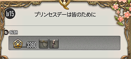 クエをクリアすると花飾り(ロイヤルピーチオーナメント)とモノクル(セネシャル・モノクル)が貰えます♪