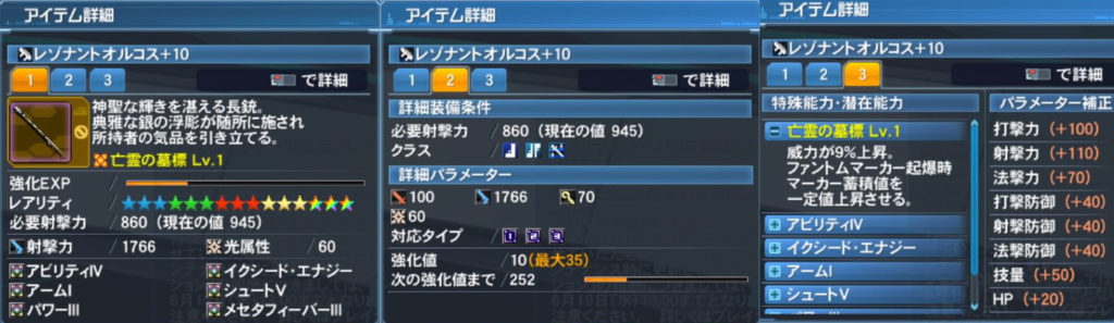 潜在能力:亡霊の墓標LV3だと威力が13%上昇。以下同じ。