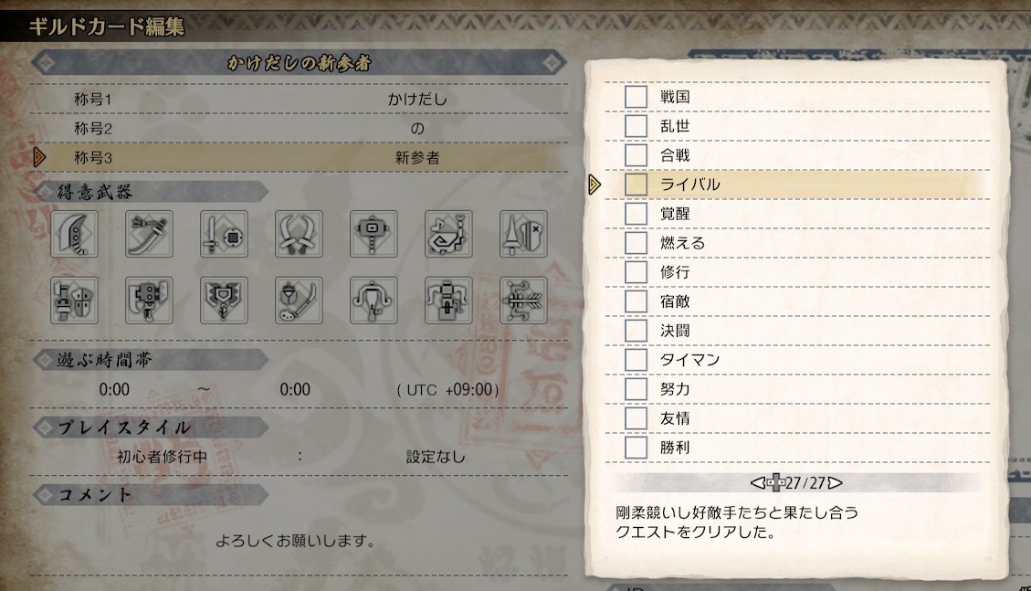 今回ゲットできた称号「ライバル」で新たにギルドカードをカスタマイズしちゃいましょー☆