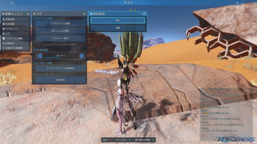 装備メニュー ➡マグ➡BGM設定 曲を持っていれば選べます!
