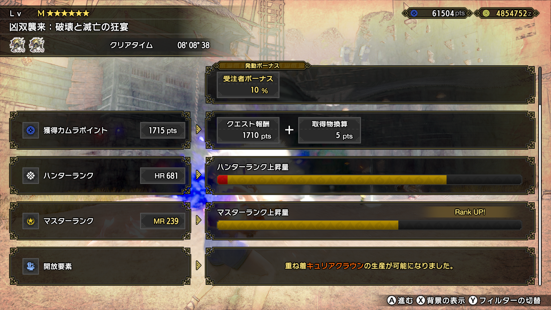 ちなみに今回のイベントクエストは激昂ラージャンの金冠確定クエストだったようです。