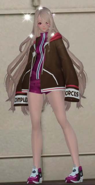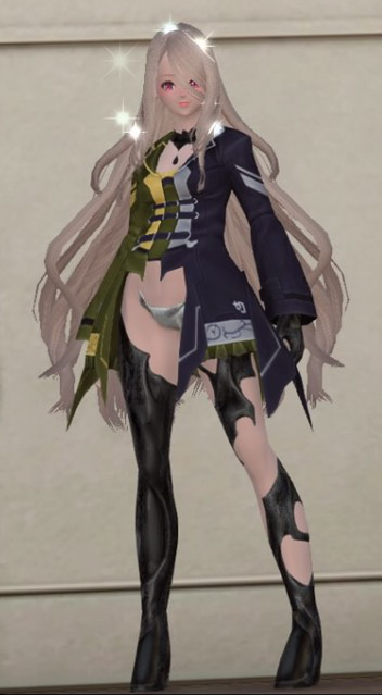 こちらは少し前のガチャのやつ♪色違いあるんですが緑のやつは安かったんですよね。着てみるとベースの組み合わせによってはいい感じになりました(*´∀`*)